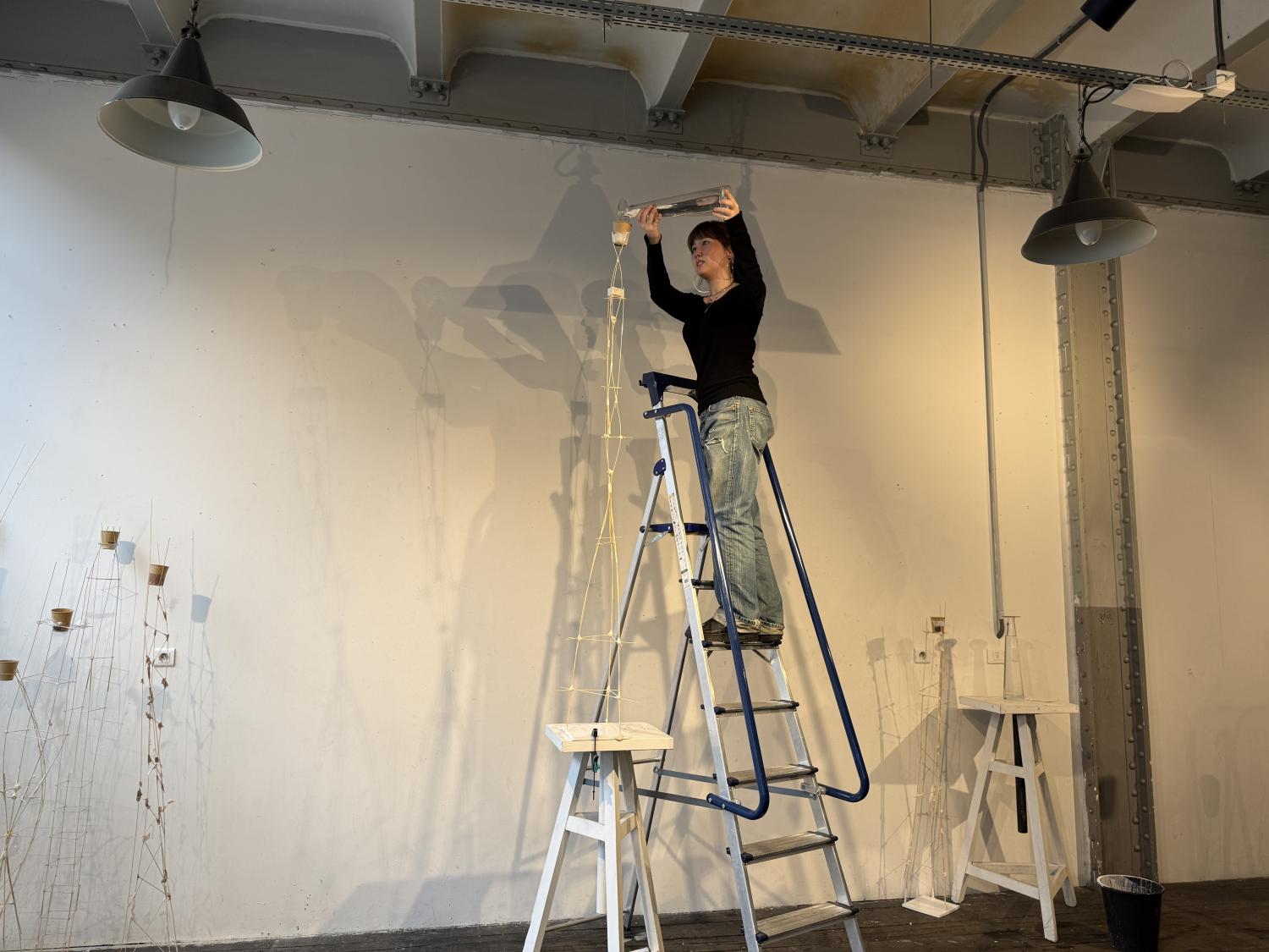 Une fois les structures achevées, chaque étudiant·e a présenté sa réalisation devant le groupe avant d’en tester la solidité. Au moment de verser l’eau, les structures vacillent, résistent ou cèdent, révélant la pertinence des choix techniques. Cet exercice a permis de s’entraîner à la création en volume tout en développant l’analyse critique, l’expérimentation et la compréhension des contraintes matérielles.