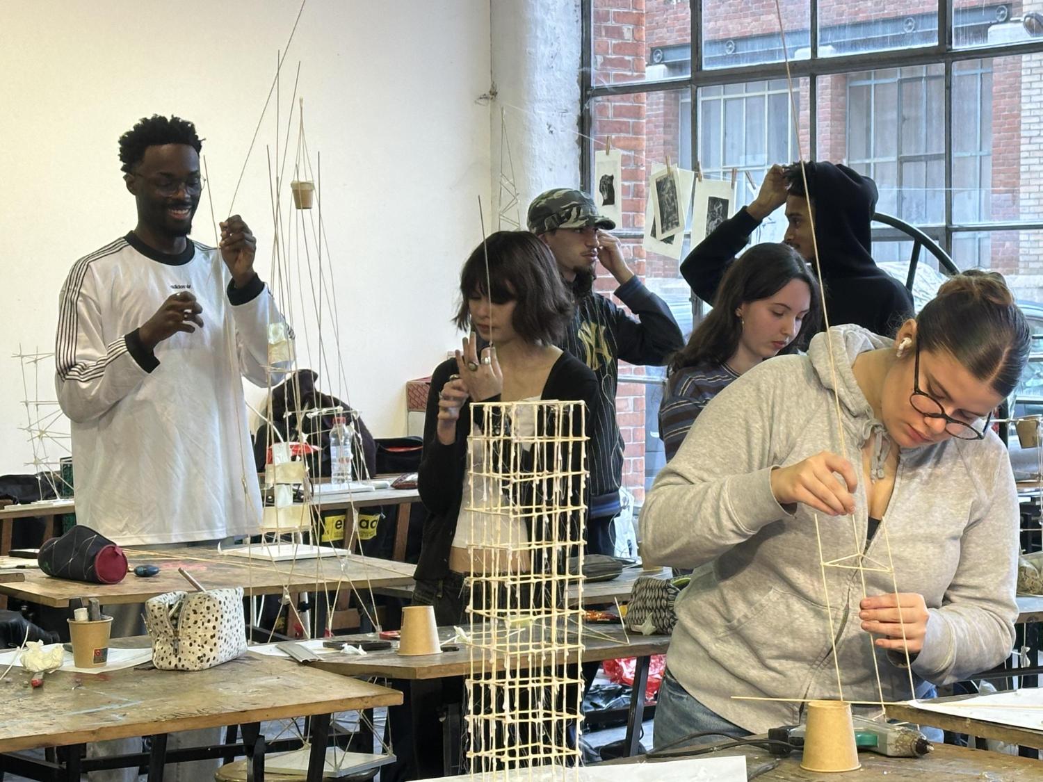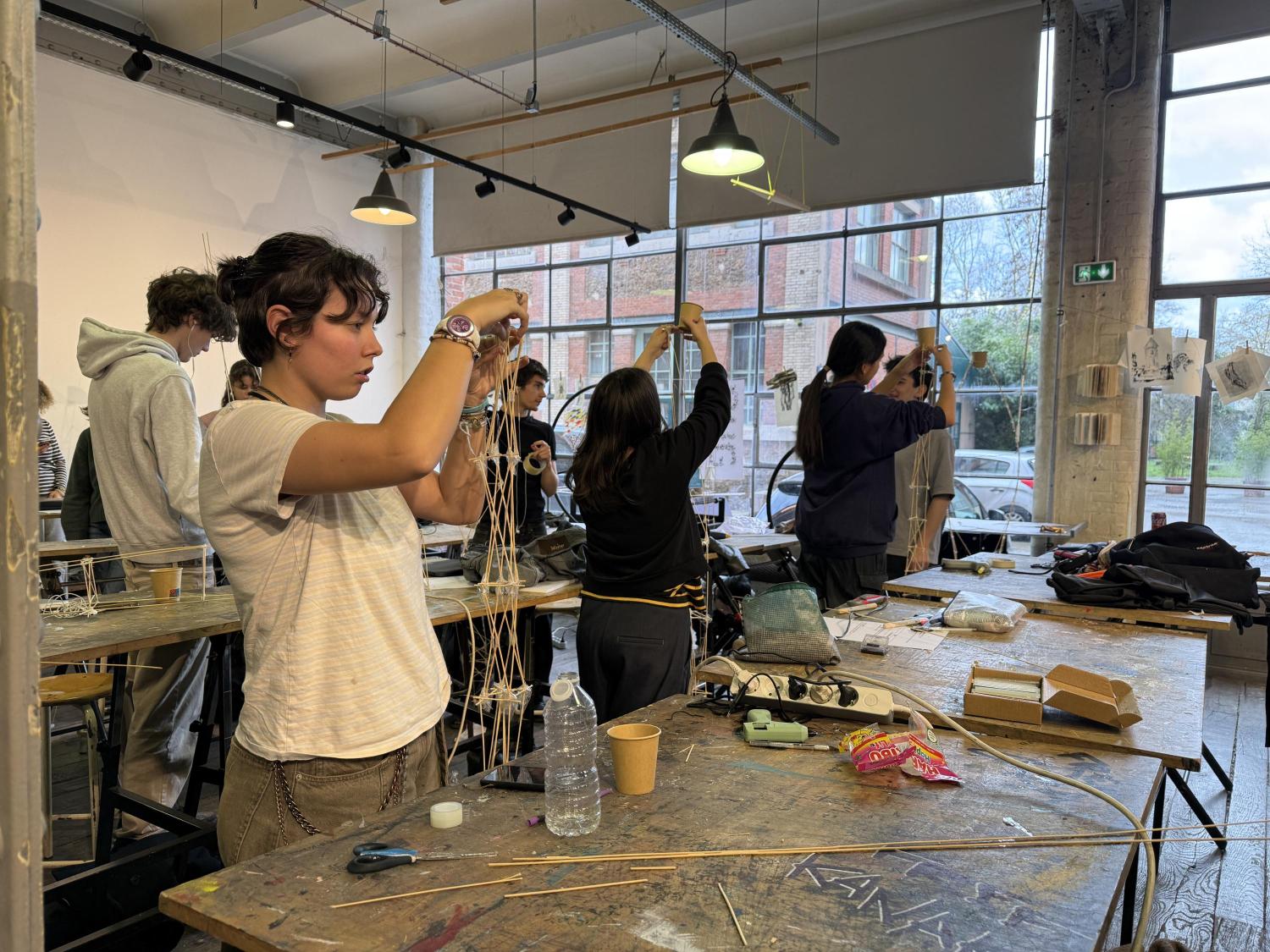Les étudiant·es de l’atelier préparatoire ont participé à un atelier dédié à la création en volume, avec un défi précis : concevoir une structure la plus haute possible et capable de résister au poids d’un gobelet rempli d’eau.