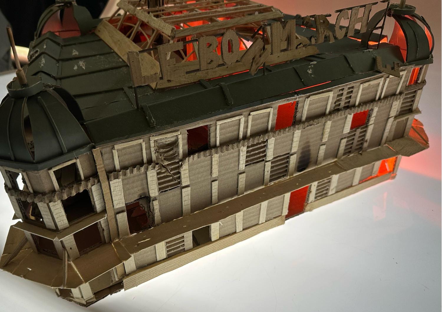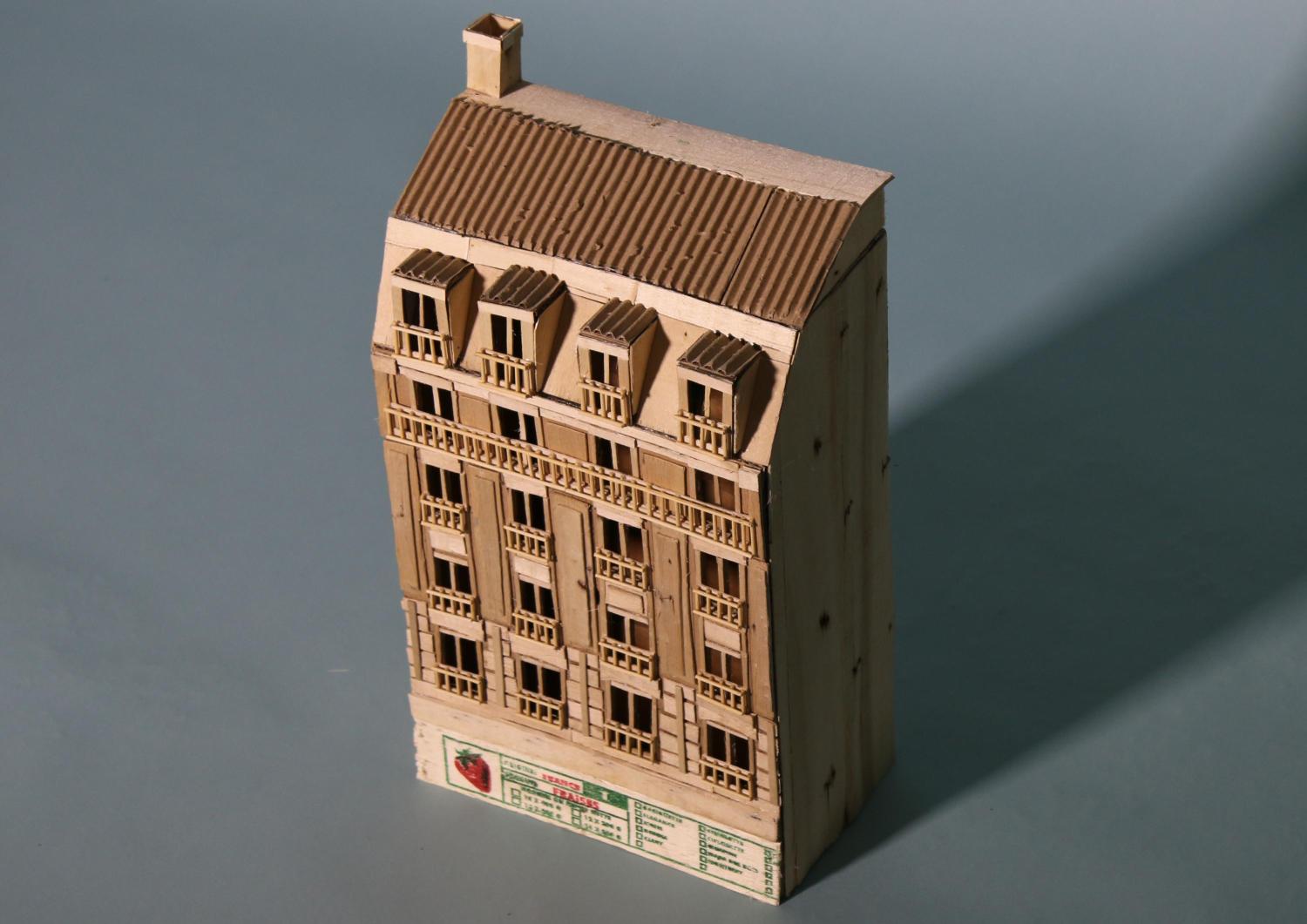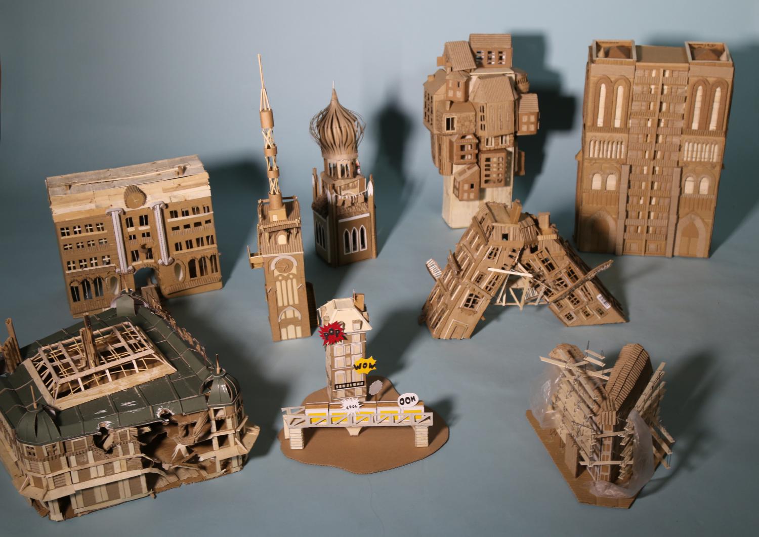 Dans cette ville miniature, on retrouve des bâtiments inspirés du réel et du fantastique : Le Bon Marché version délabrée, des immeubles haussmanniens typiques de Paris, mais aussi des constructions futuristes et originales, défiant les règles classiques de l’architecture. Chaque élément, conçu à partir de matériaux recyclés, participant à la construction d’un ensemble cohérent, où créativité et éco-conception se mêlent harmonieusement.