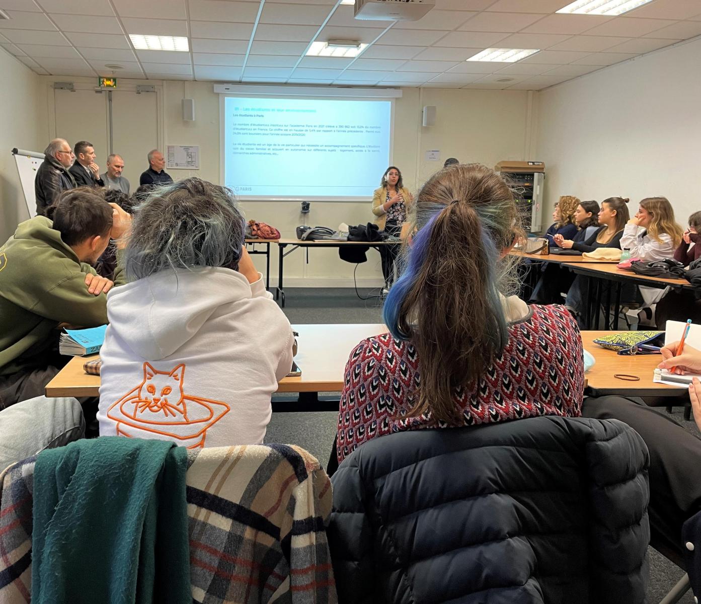 Le jour du brief, tous les étudiants de troisième année ont été réunis à la MIE, 50 rue des Tournelles, autour de Rym Hyehia, Cheffe du bureau de la vie étudiante qui a présenté les missions principales de la MIE et ses proches perspectives d'évolution.
